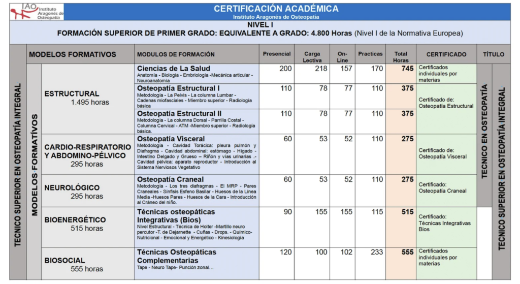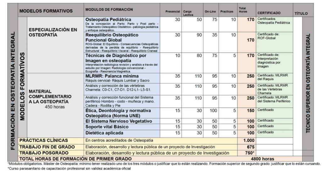 • La modalidad semipresencial y online está disponible para los cursos de Quiromasaje y Osteopatía Integral.